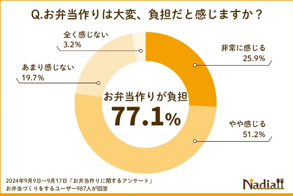 PRTIMESの調査によると、約7割がお弁当作りに負担を感じているとあります。